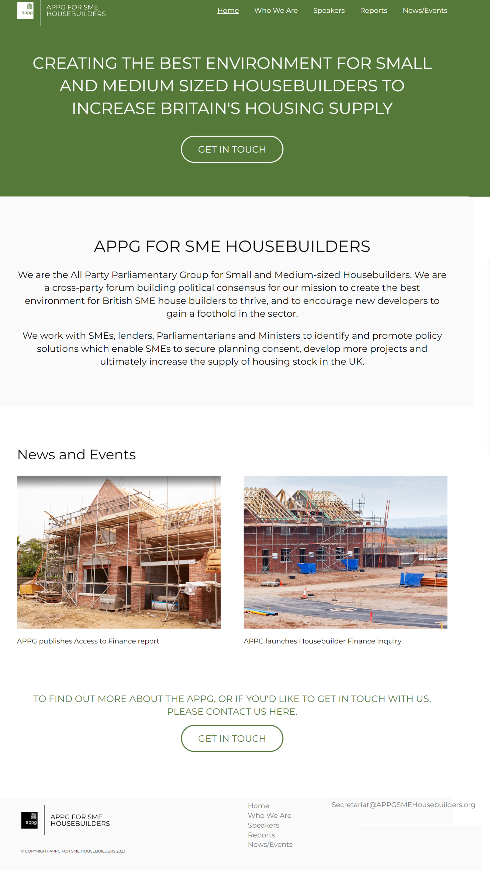 Website support for Parliamentary housebuilding group